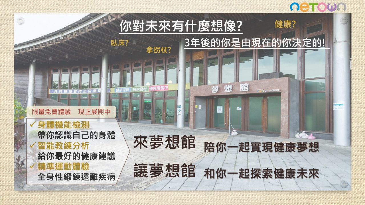 經由夢想館先進雲端科技與 自主健康管理,加上樂齡學習,邁向健康幸福 100的老年生涯!
