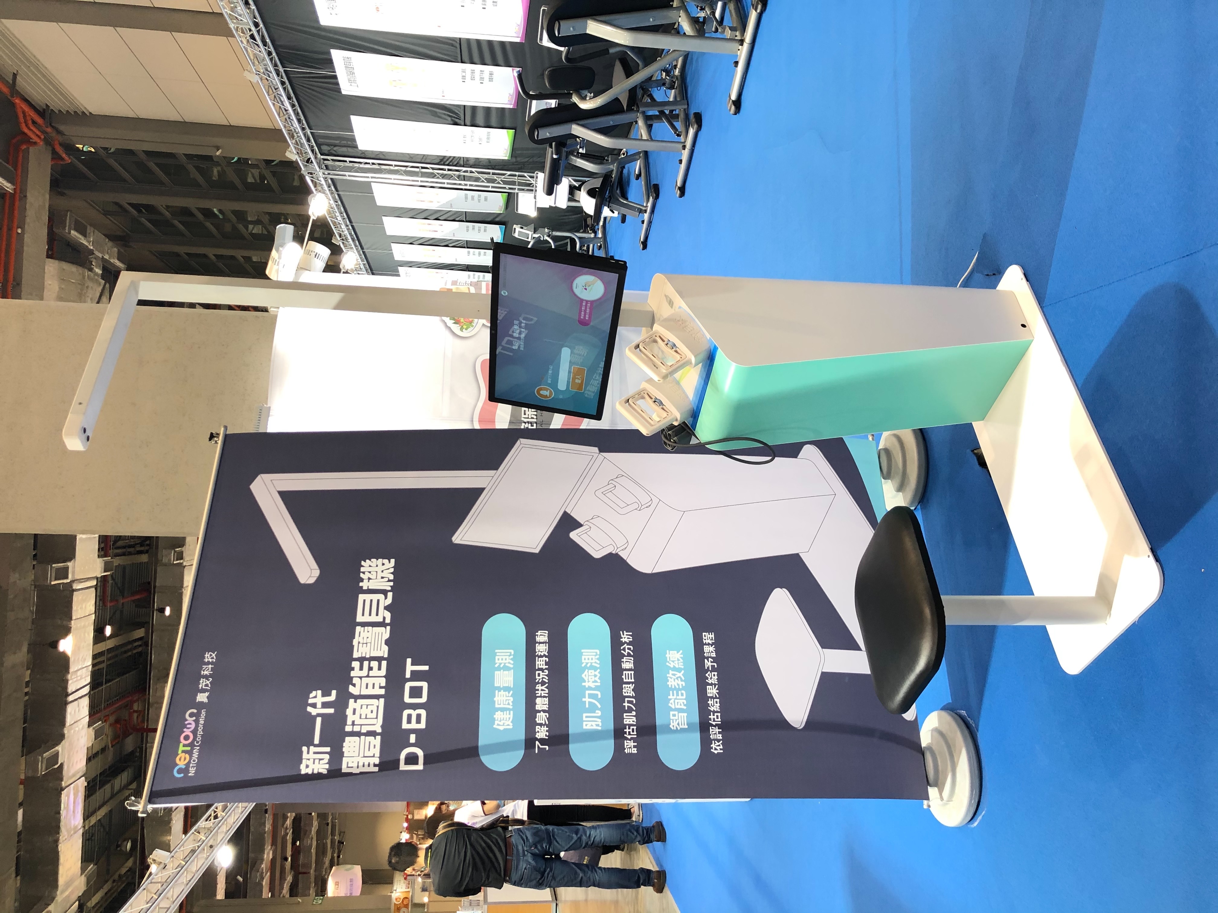 • iBot 智慧肌力評估站 :3合1系統能精確評估握力、下肢力量和平衡,並有多種個人化訓練遊戲,提供提供精確的訓練評估報告。