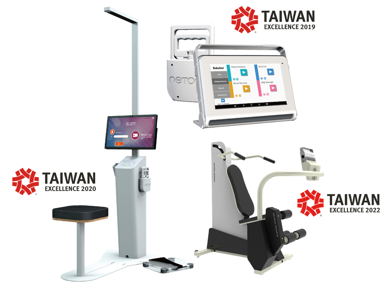 • iBot 智慧肌力評估站 :結合握力、腿力、平衡的量測及遊戲化訓練,讓使用者快速了解自己的肌力狀態,提供醫護單位簡單追蹤使用者的肌力變化及訓練成果。